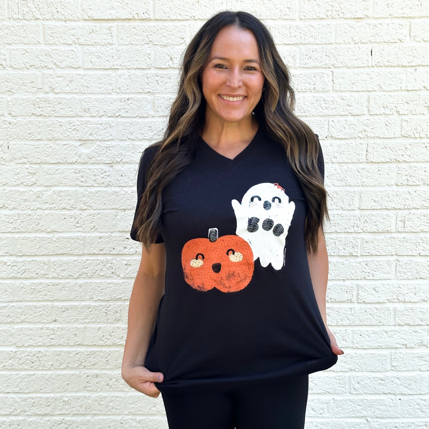 HALLOWEEN: Cutesy Pumpkin & Ghost - VNECK