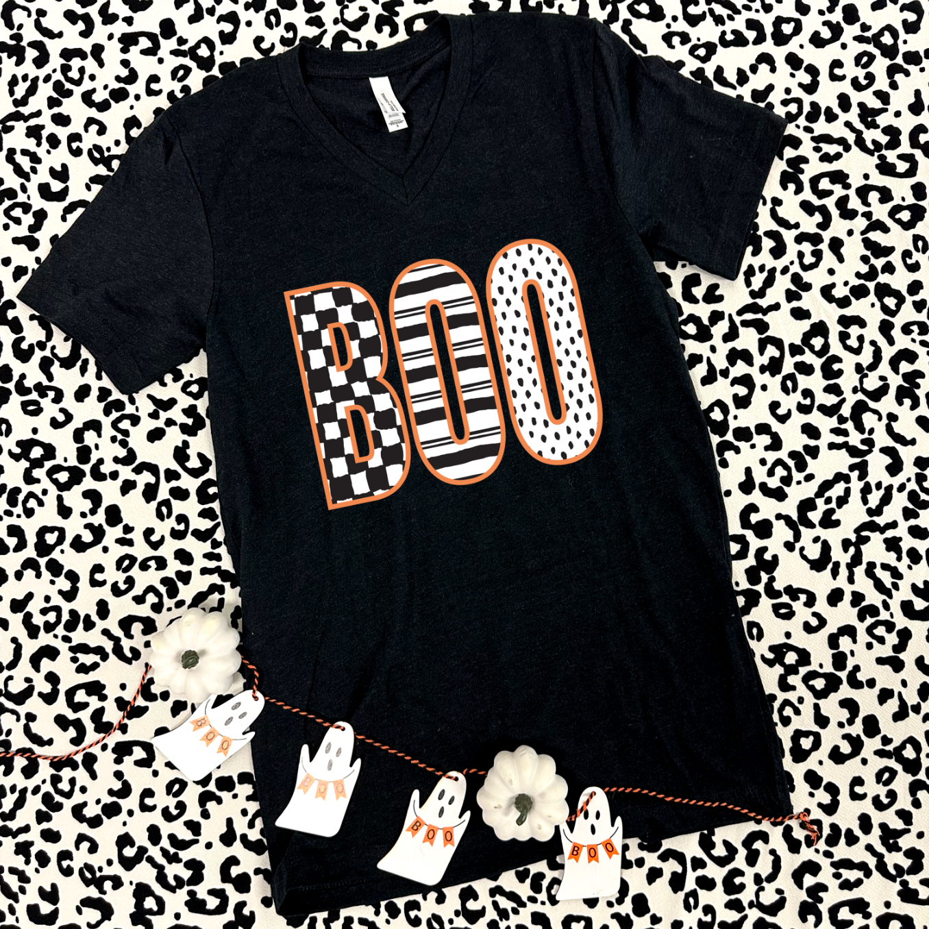 HALLOWEEN 2024: BOO Black and White Patterns (VNECK)