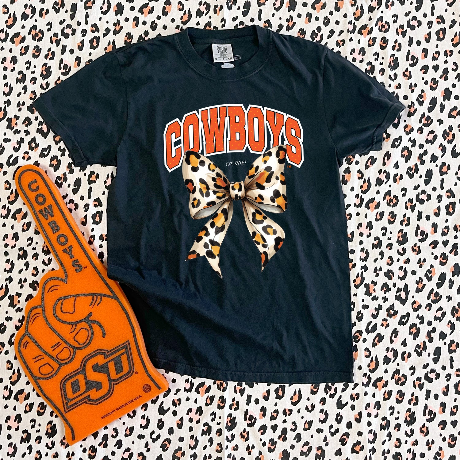 OK STATE 2025: Cowboys Leopard Bow (COMFORT COLORS SHORTSLEEVE)