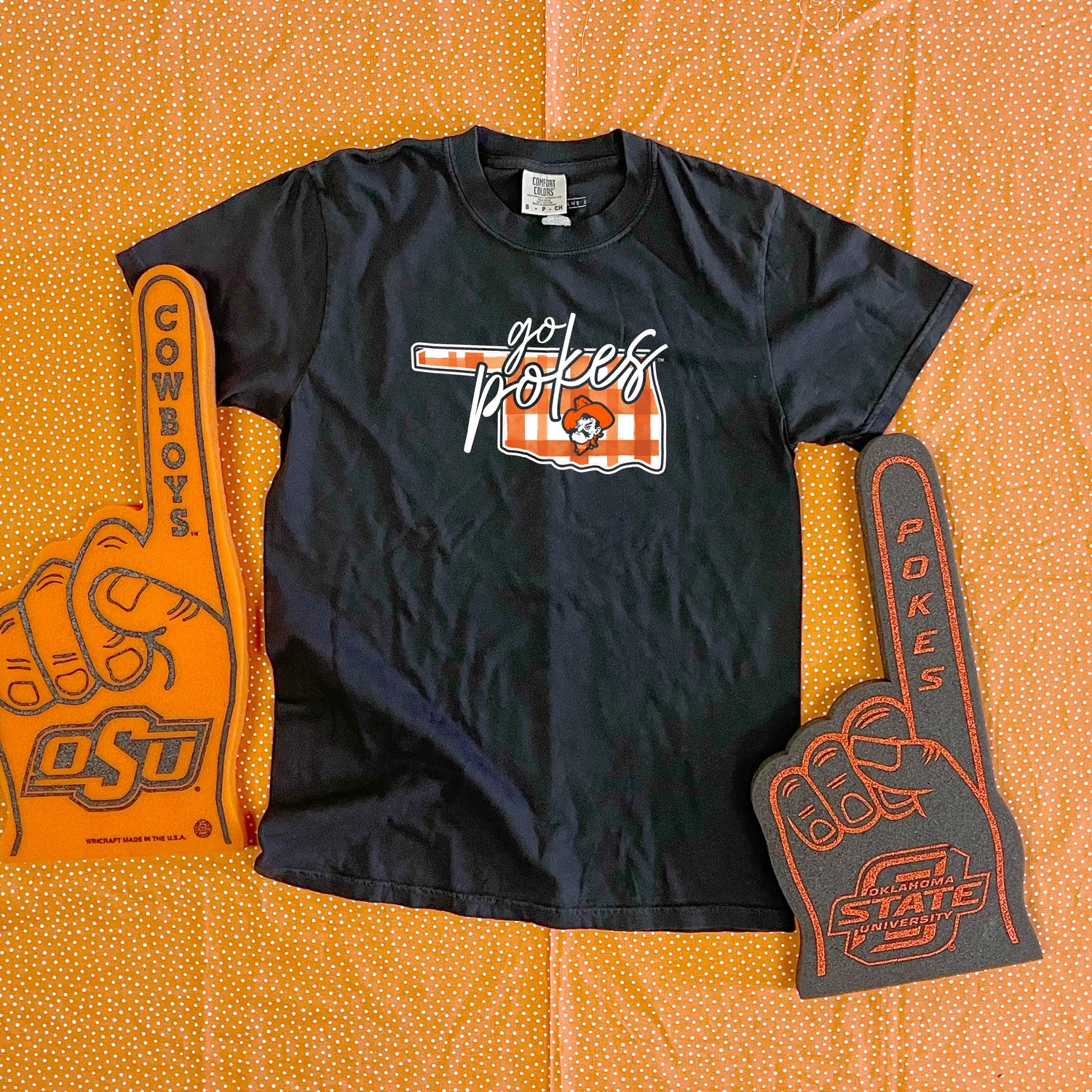 OK STATE 2025: Go Pokes Watercolor Plaid State (COMFORT COLORS SHORTSLEEVE)