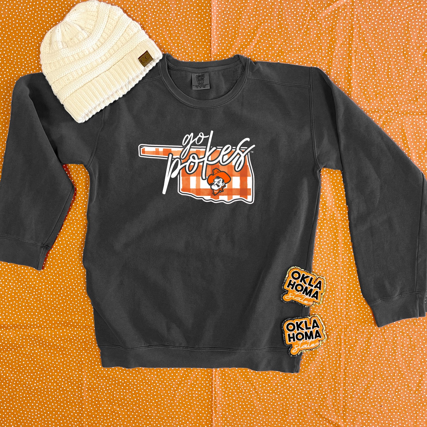 OK STATE 2025: Go Pokes Watercolor Plaid State (COMFORT COLORS SWEATSHIRT)