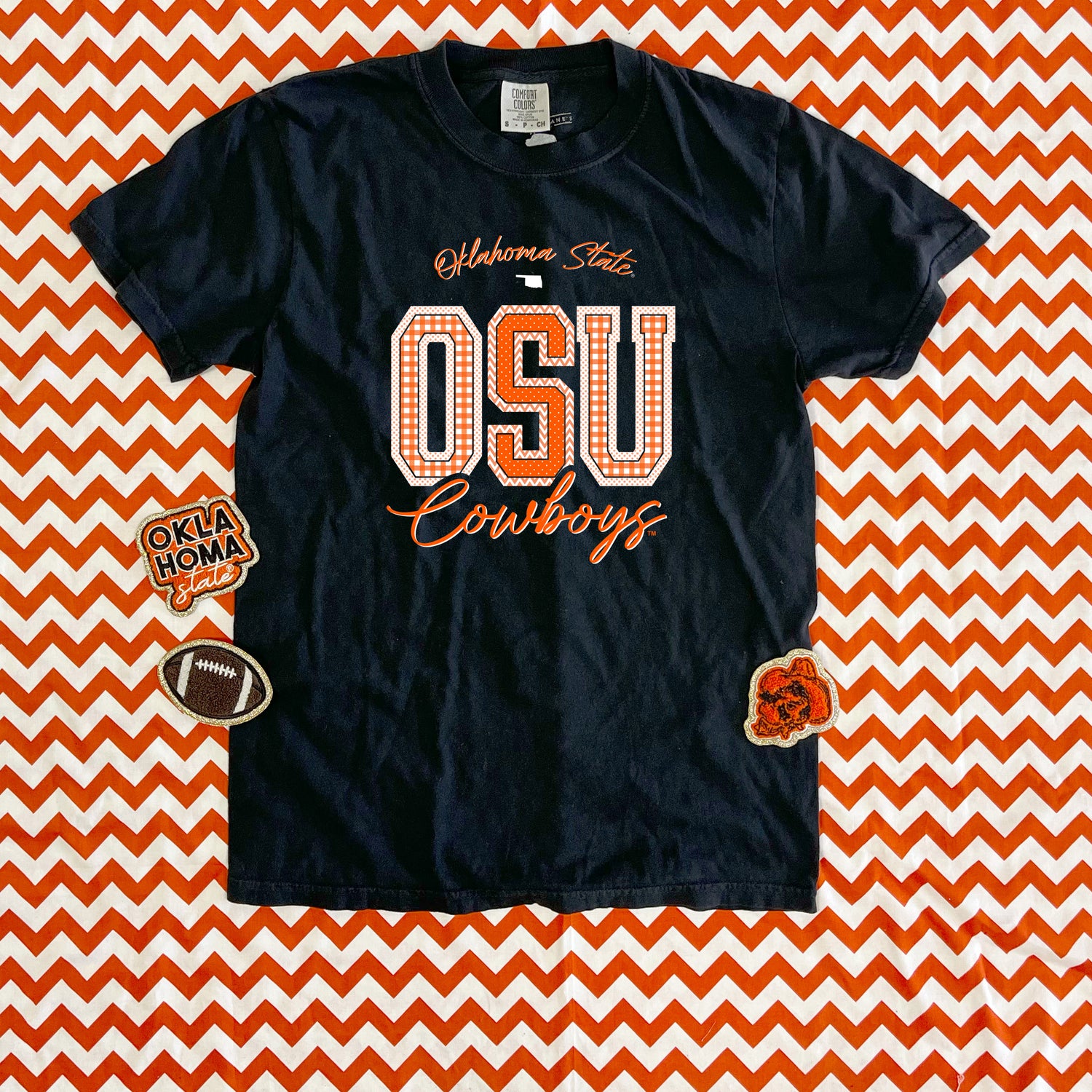 OK STATE 2025: OSU Mixed Pattern Gingham & Chevron (COMFORT COLORS SHORTSLEEVE)