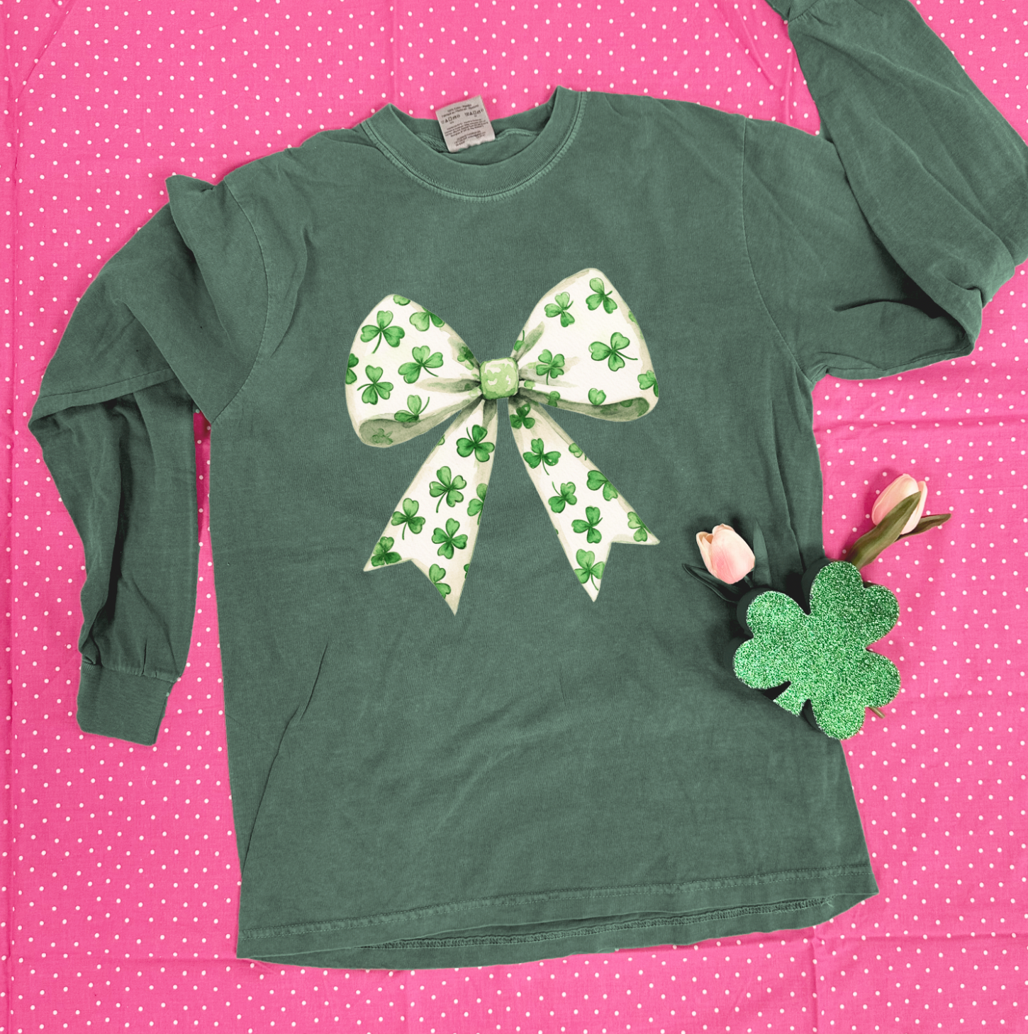 ST.PATTY 2025: Watercolor Shamrock Bow - LONGSLEEVE
