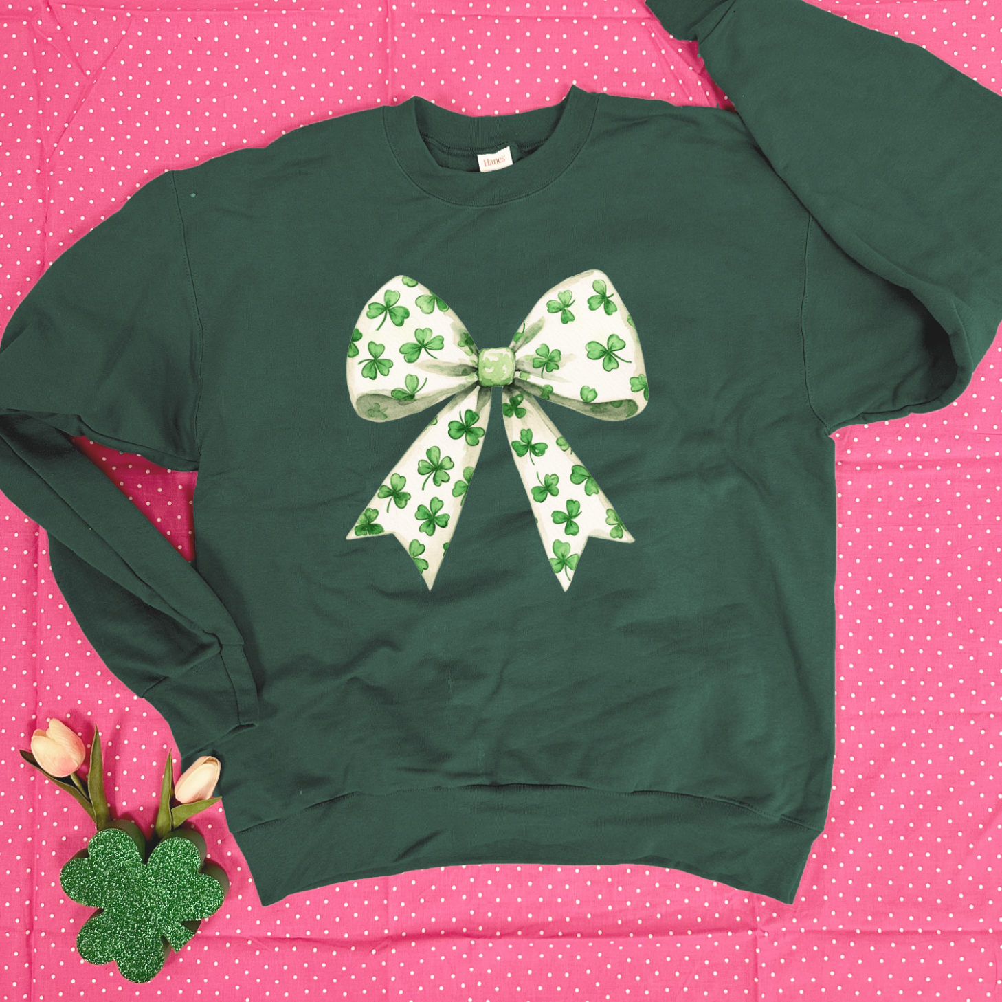 ST.PATTY 2025: Watercolor Shamrock Bow - SWEATSHIRT