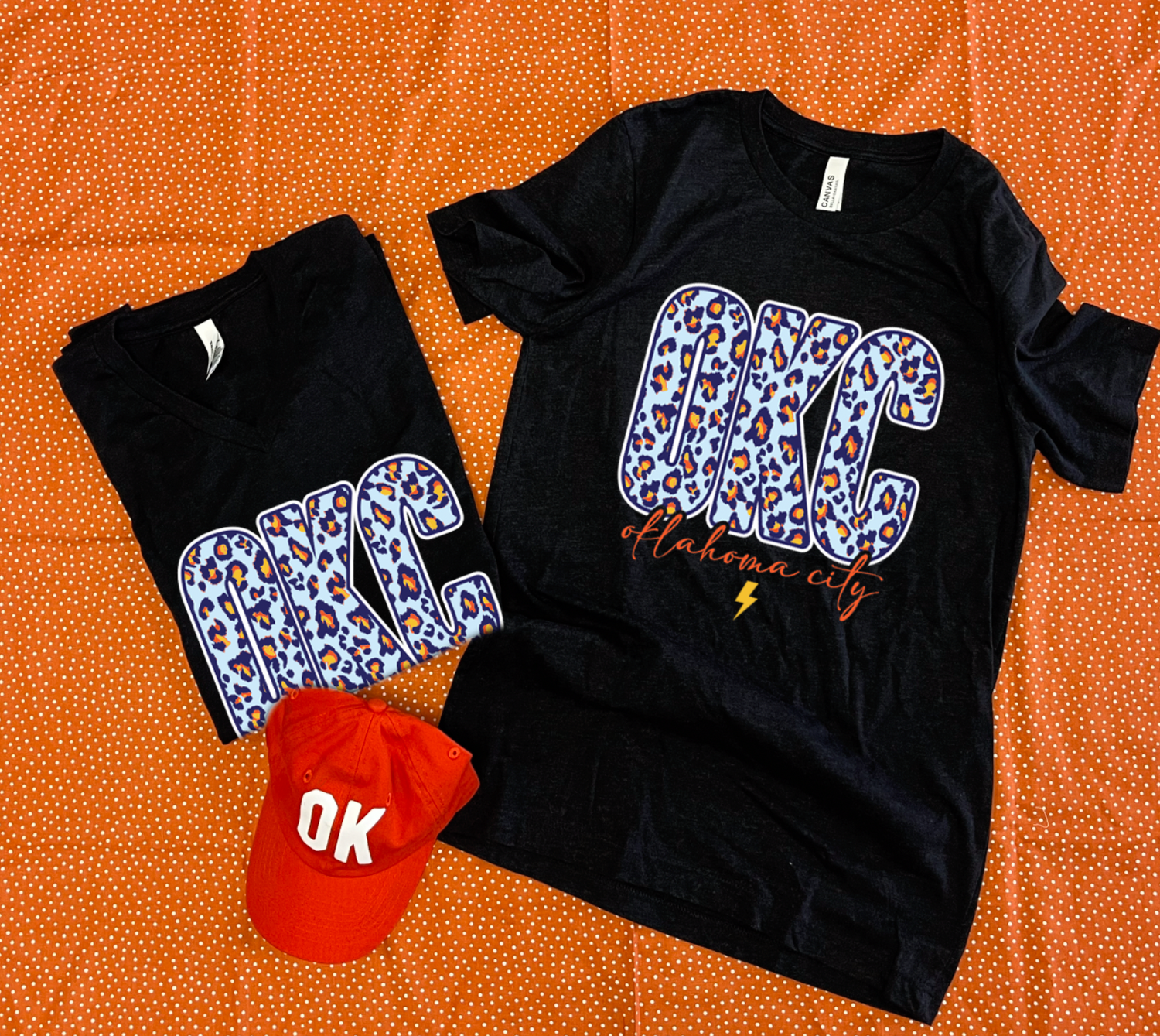 OKC SPIRIT: OKC Spirit Leopard (BELLA CANVAS VNECK)