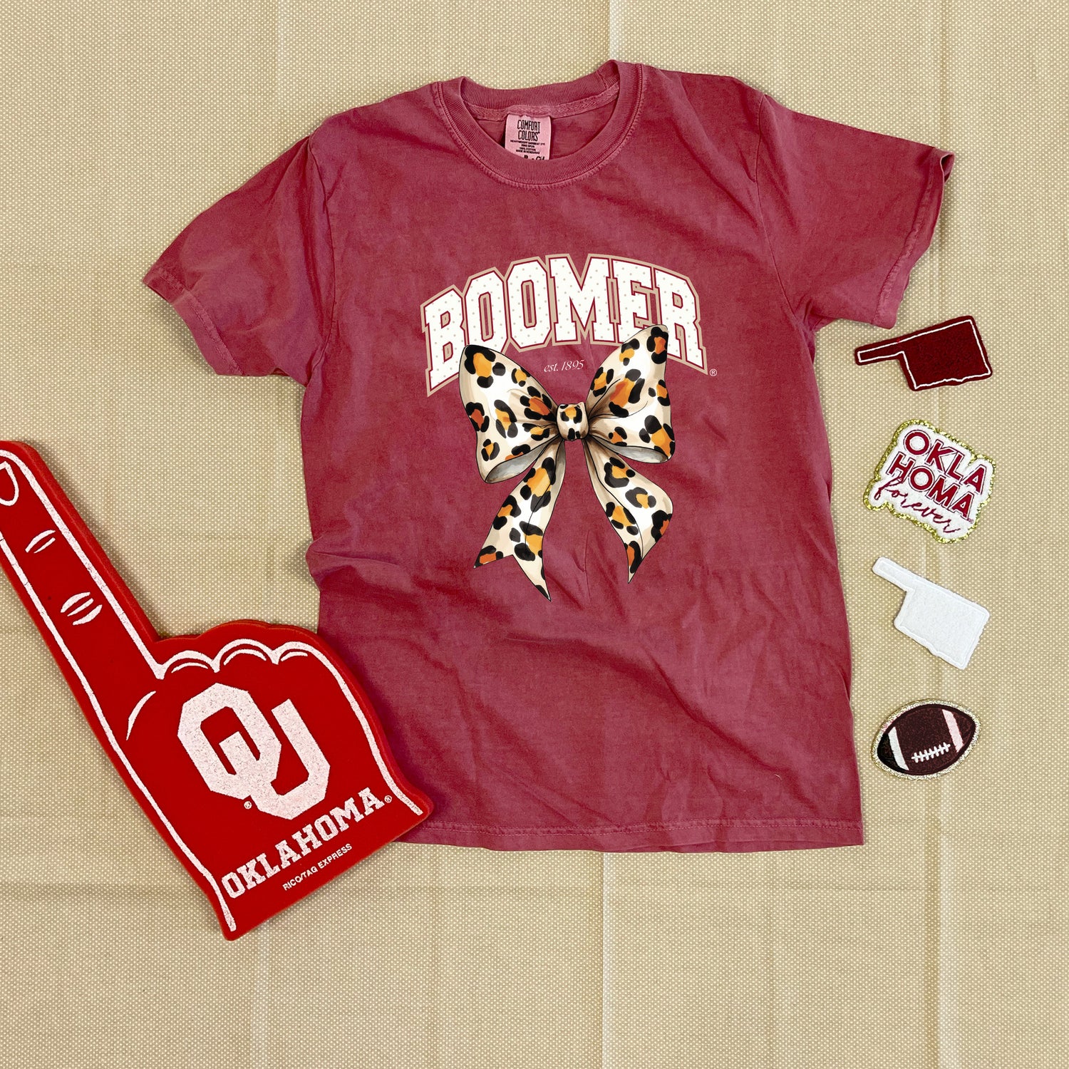 UNIV. OF OK 2025: Boomer Leopard Bow (COMFORT COLORS SHORTSLEEVE)